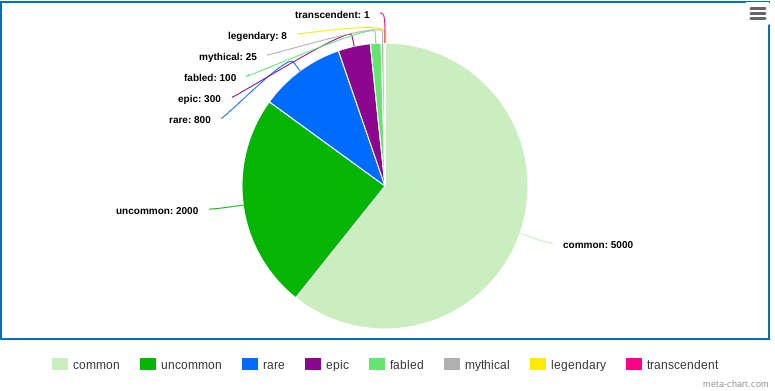 | Transcendent | 2000% | 0.012% (1 in 8234) | 6 |